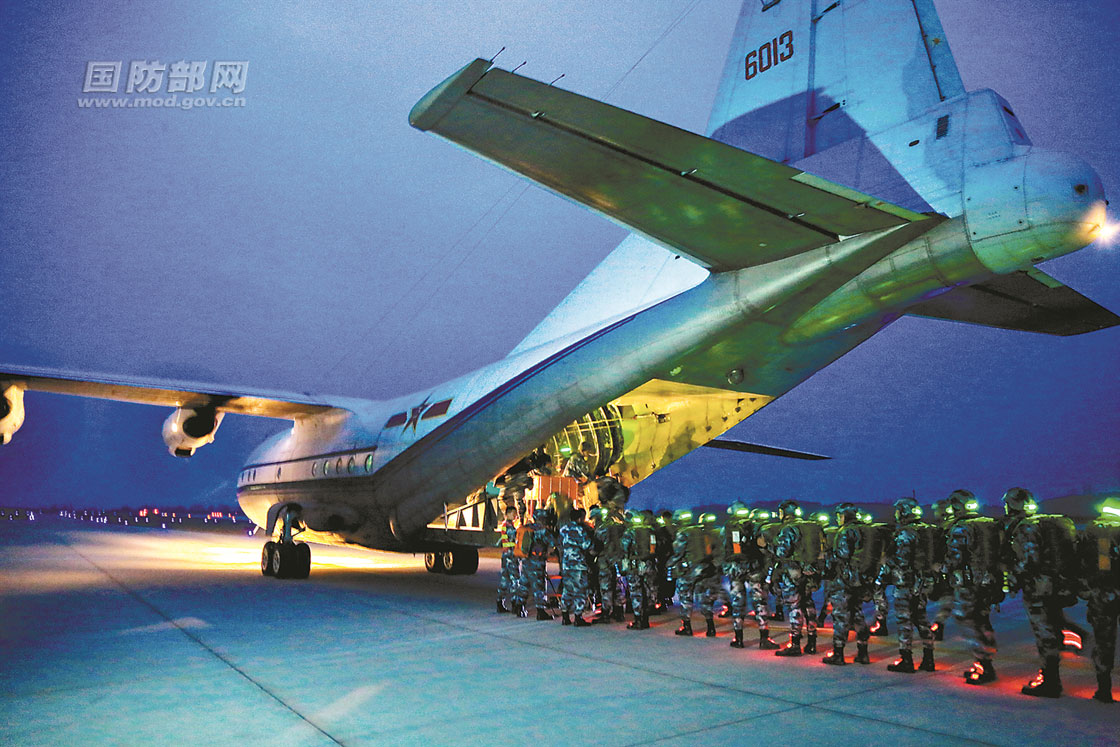 三月中旬,空降兵某旅開展跨晝夜多路集群武裝傘降訓練,錘煉官兵全域快速到達實戰(zhàn)能力。圖為夜幕下官兵快速登機。方 超攝