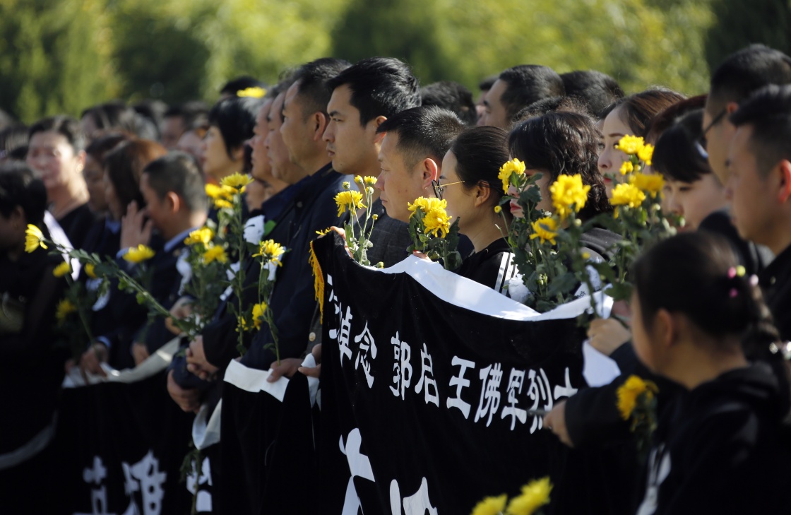 4月6日,在四川木里森林火災撲救中英勇犧牲的烈士郭啟、王佛軍骨灰回到家鄉甘肅隴南,受到家鄉父老鄉親迎接。冉創昌 攝