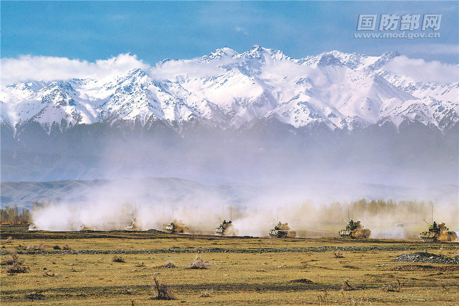 新疆軍區某裝甲團在天山腹地展開編隊機動等課目訓練
