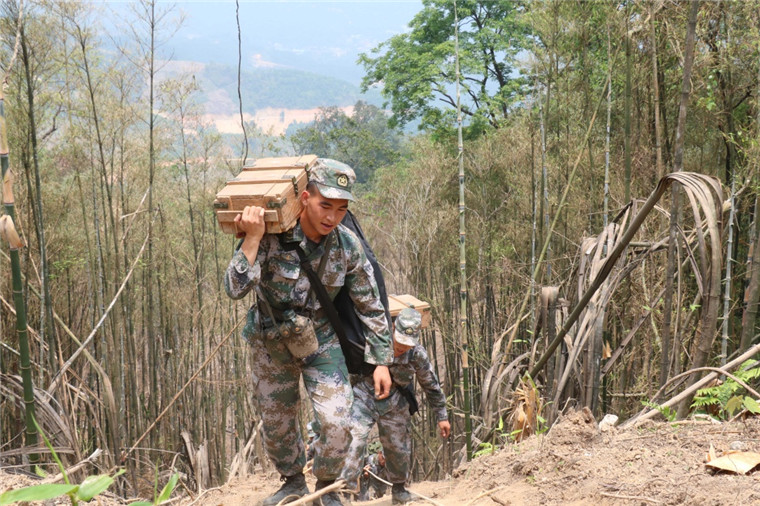 在云南麻栗坡,杜富國向雷場(chǎng)外轉(zhuǎn)運(yùn)炸藥(2015年4月26日攝)。新華社發(fā) (黃巧 攝)