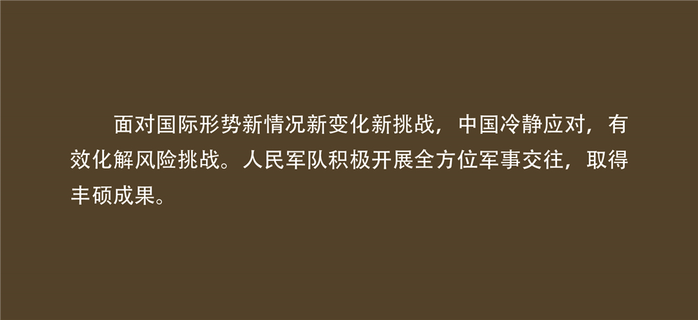 20世紀90年代冷戰結束,國際形勢發生深刻變化。在江澤民國防和軍隊建設思想指導下,人民軍隊貫徹新時期軍事戰略方針,著力解決“打得贏、不變質”兩個歷史性課題,積極推進中國特色軍事變革。軍事外交與時俱進,在斗爭中合作、曲折中發展,通過對話增進信任,通過合作促進安全,交流領域不斷拓寬,合作層次逐步提升,對外軍事交流與合作實現新發展。
