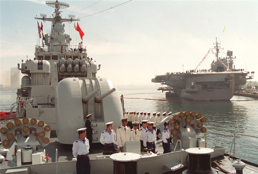 1997年3月,中國海軍艦艇編隊首次訪問美國本土。圖為艦艇編隊抵達美國西海岸圣迭戈軍港。