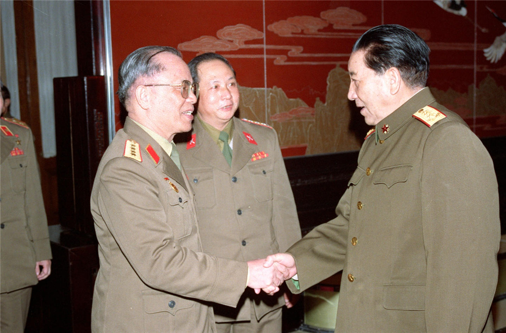 1992年12月,國務委員兼國防部長秦基偉在北京人民大會堂會見越南國防部長段奎。