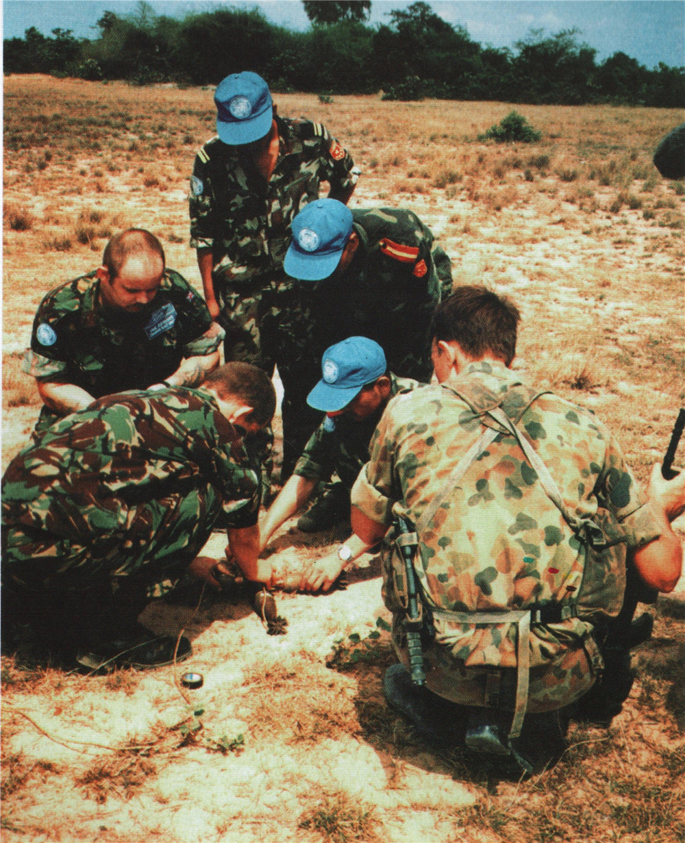 中國維和工兵分隊在柬埔寨指導排雷訓練。