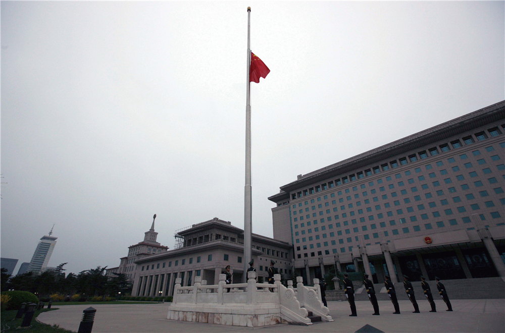 聯合國大廈前高高飄揚的中華人民共和國國旗。