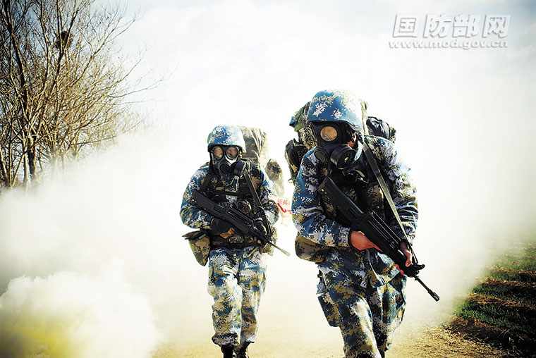 十二月上旬,海軍陸戰(zhàn)隊(duì)某旅新兵大隊(duì)以連貫演練的方式,組織新兵進(jìn)行結(jié)業(yè)考核。圖為新兵全副武裝通過染“毒”地帶。