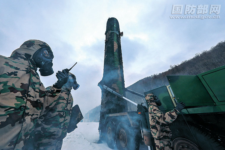 1月3日,火箭軍某旅官兵冒著嚴寒在林海雪原開展實戰化發射演練。陳浩 攝