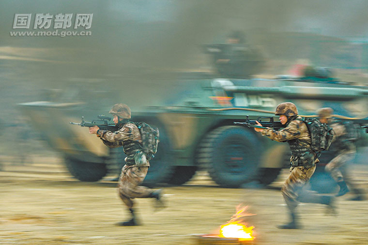 1月5日,陸軍第83集團軍某旅“紅一連”開展步裝協同戰術演練。胡善雨 攝