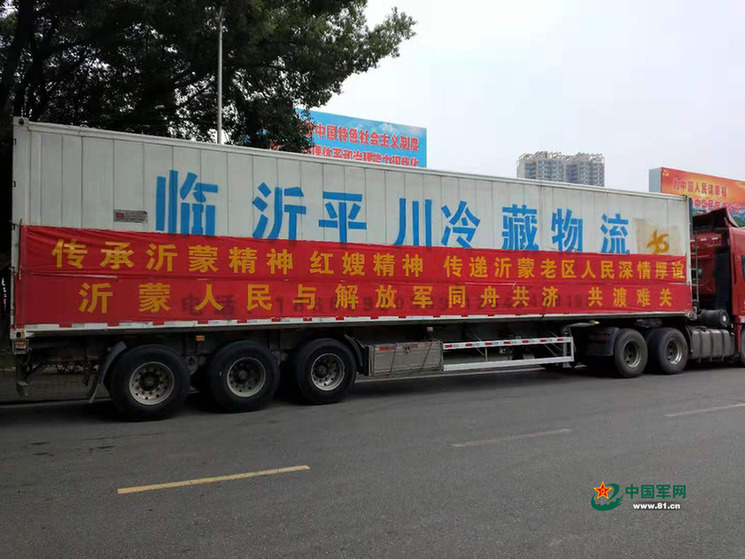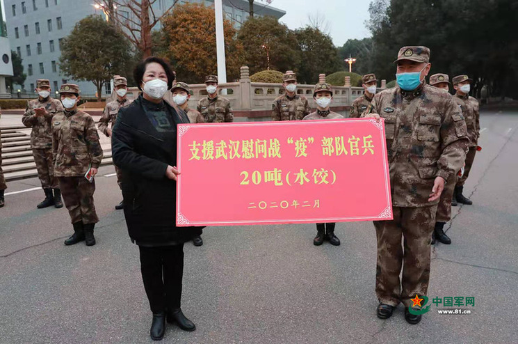 2月2日上午7點半,裝有20噸速凍水餃的貨車緩緩駛入湖北省軍區營區,中午12點,部分奮戰在防疫一線的官兵們,飯盒里多了一道特殊的菜——來自沂蒙老區的餃子。
