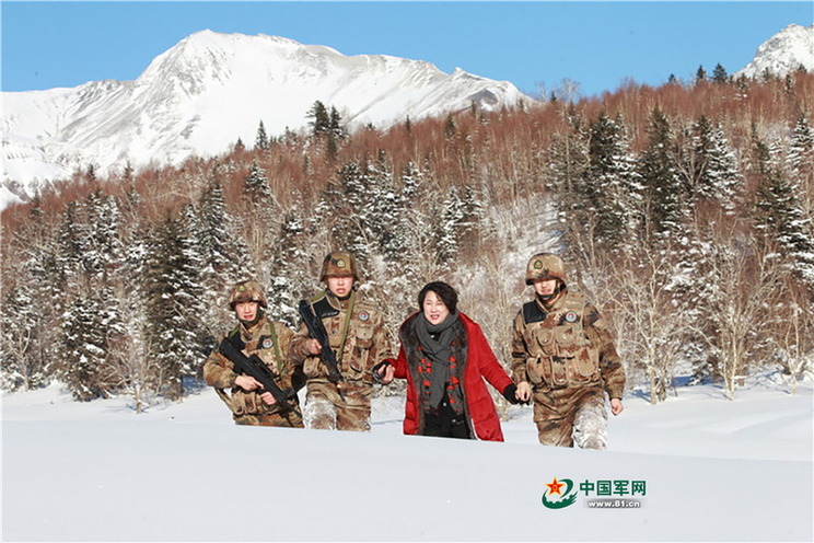 朱呈镕和官兵們行走在林海雪原。朱武濤 攝