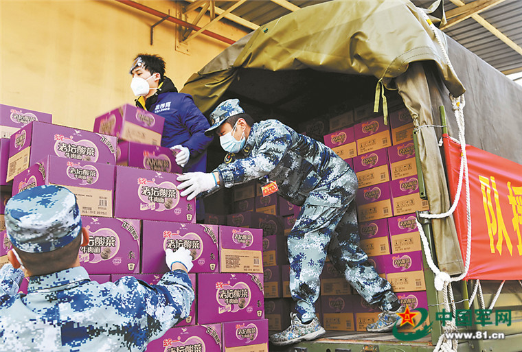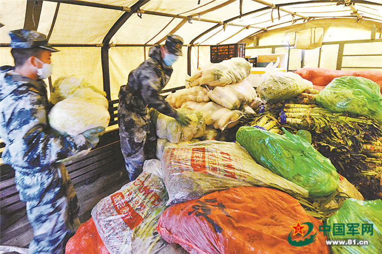2月2日那天,開了10余年雷達裝備車的四級軍士長田磊,第一次開著軍用卡車拉上水果蔬菜,穿行在這座城市的大街小巷。