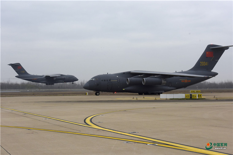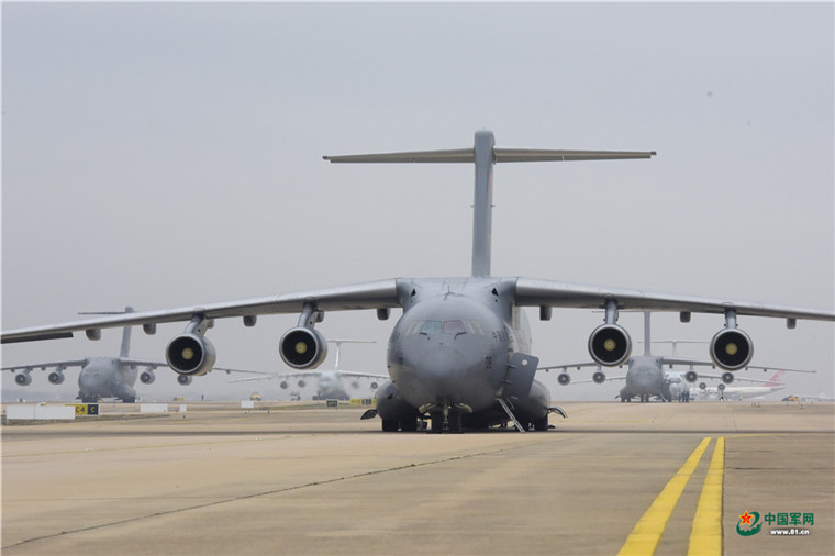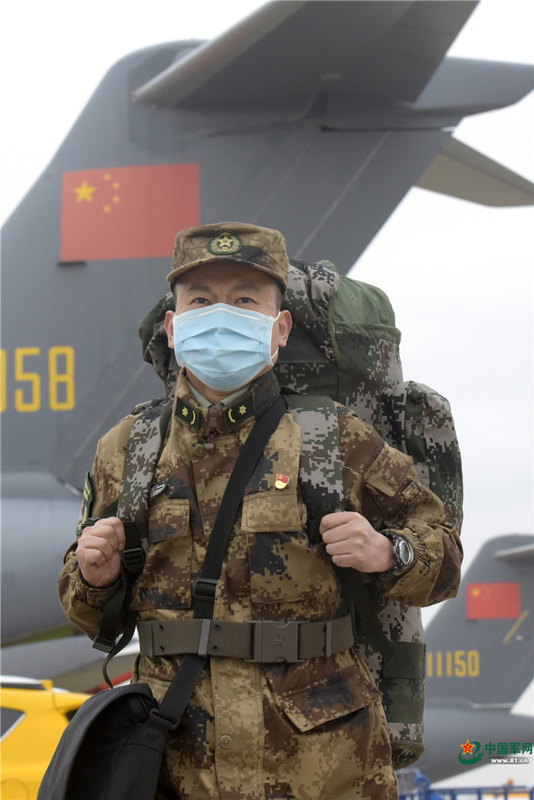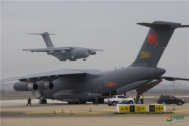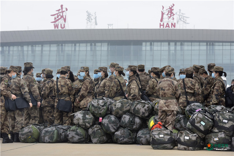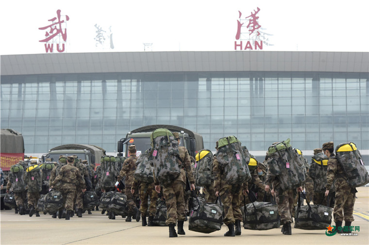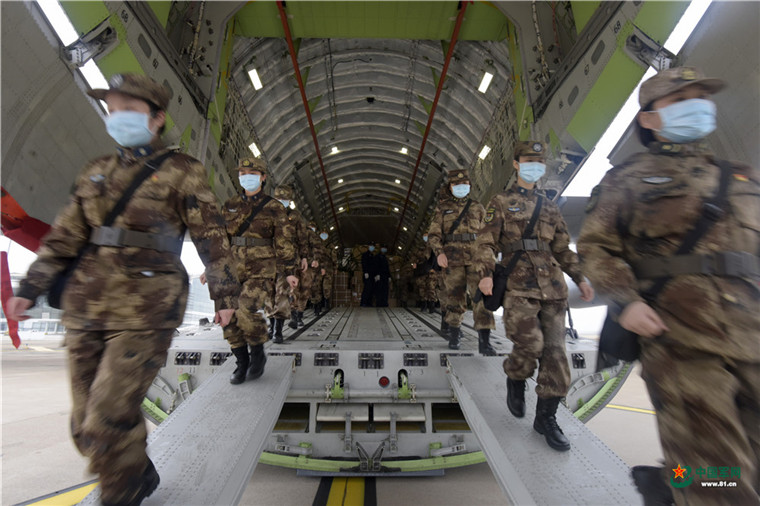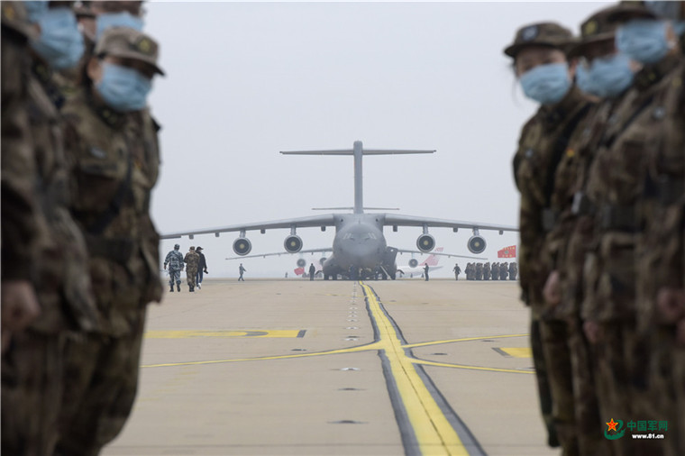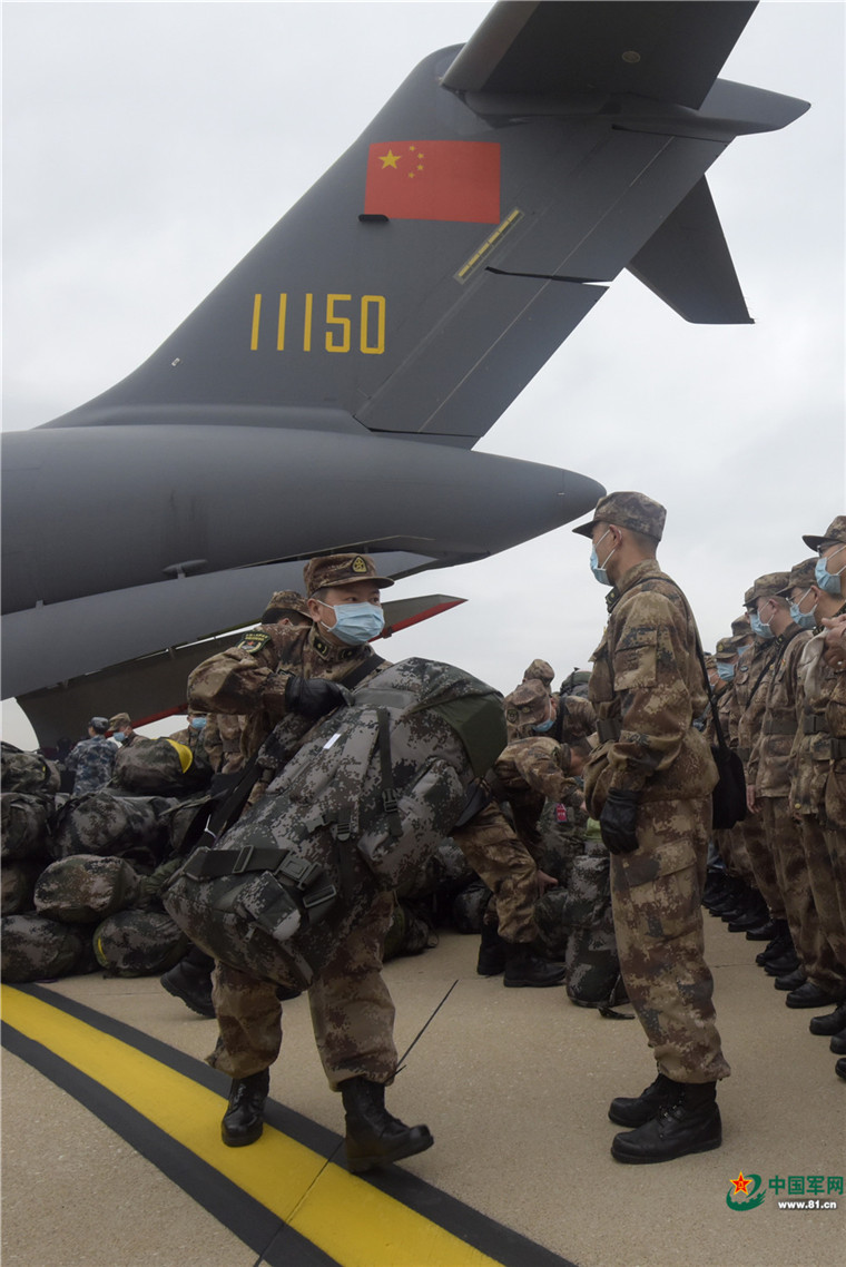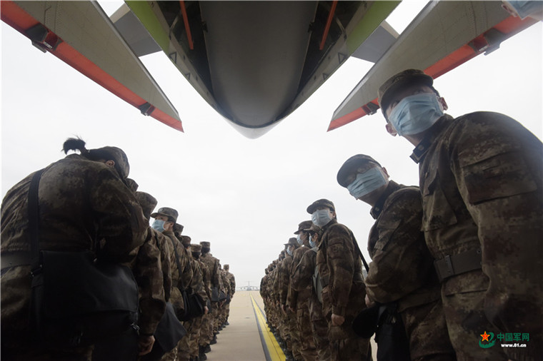 中國軍網武漢2月13日電 解放軍報記者范顯海攝影報道:2月13日上午,軍隊增派支援武漢抗擊新冠肺炎疫情的醫護人員,乘坐3型11架運輸機抵達武漢。