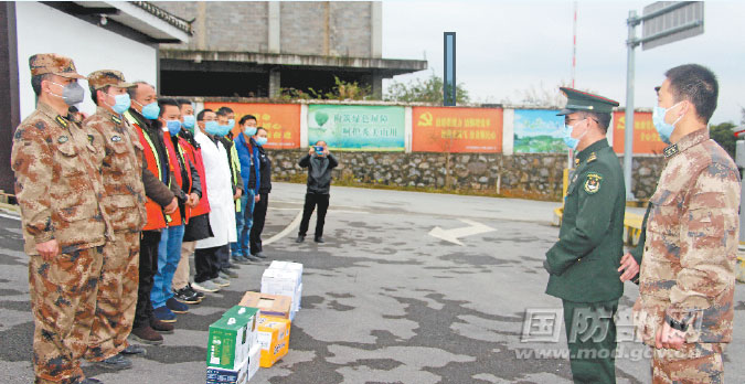 “排雷英雄”杜富國看望慰問防疫一線執勤民兵工作人員。況守江攝