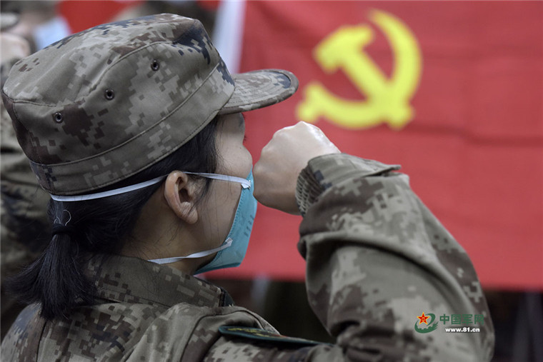 2月1日,陸軍軍醫(yī)大學(xué)醫(yī)療隊(duì)充分發(fā)揮黨組織戰(zhàn)斗堡壘作用,為沖鋒在戰(zhàn)“疫”一線的醫(yī)療隊(duì)隊(duì)員舉行了一次特別的入黨儀式,鼓舞醫(yī)療隊(duì)隊(duì)員以更加高昂的的斗志投身疫情防控斗爭(zhēng)。解放軍報(bào)記者 范顯海 攝