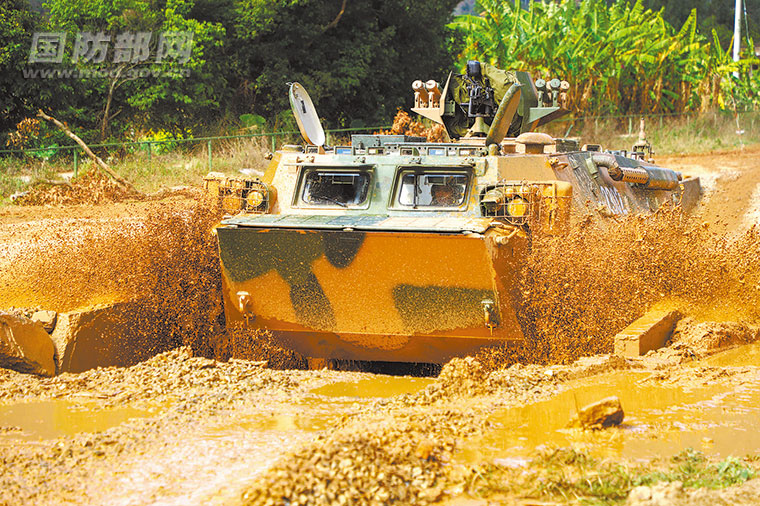 近日,第72集團軍某合成旅開展裝甲車復雜道路駕駛訓練。圖為裝甲車快速通過泥水路段。沈樹豪攝