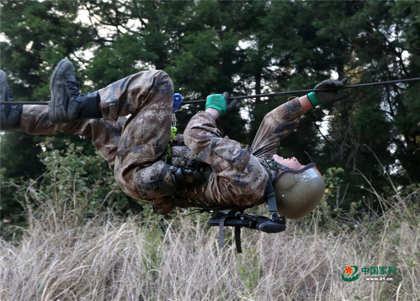 小隊按照戰術要求進行克服崖壁課目考核。(張正舉 攝)
