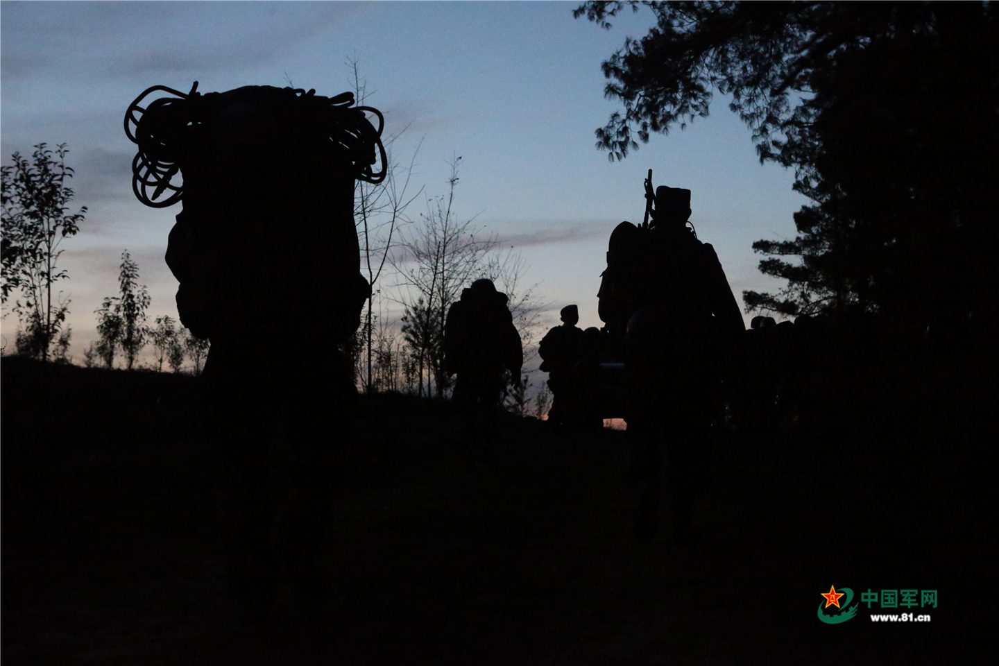 夜幕下,小隊隊員火速趕往宿營點,他們要爭取點滴時間完成夜間無光條件下宿營帳篷搭設。(張正舉 攝)