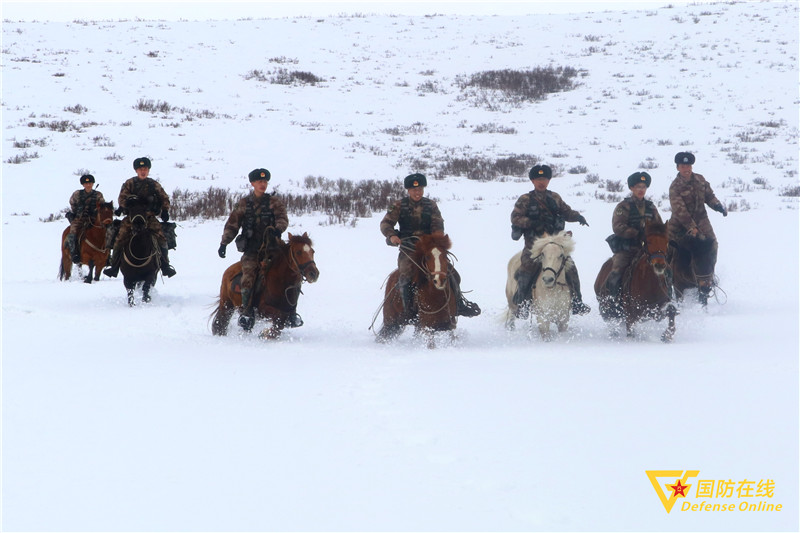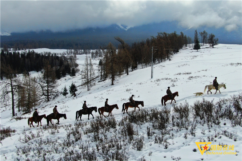 官兵們騎馬穿行在茫茫的雪山上,刺骨的寒風已經將他們的臉頰吹得通紅,但官兵們依然觀察著邊境情況,沒有絲毫放松。
