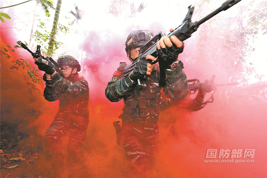 ——武警海南總隊機動支隊開展反恐戰(zhàn)術演練掠影