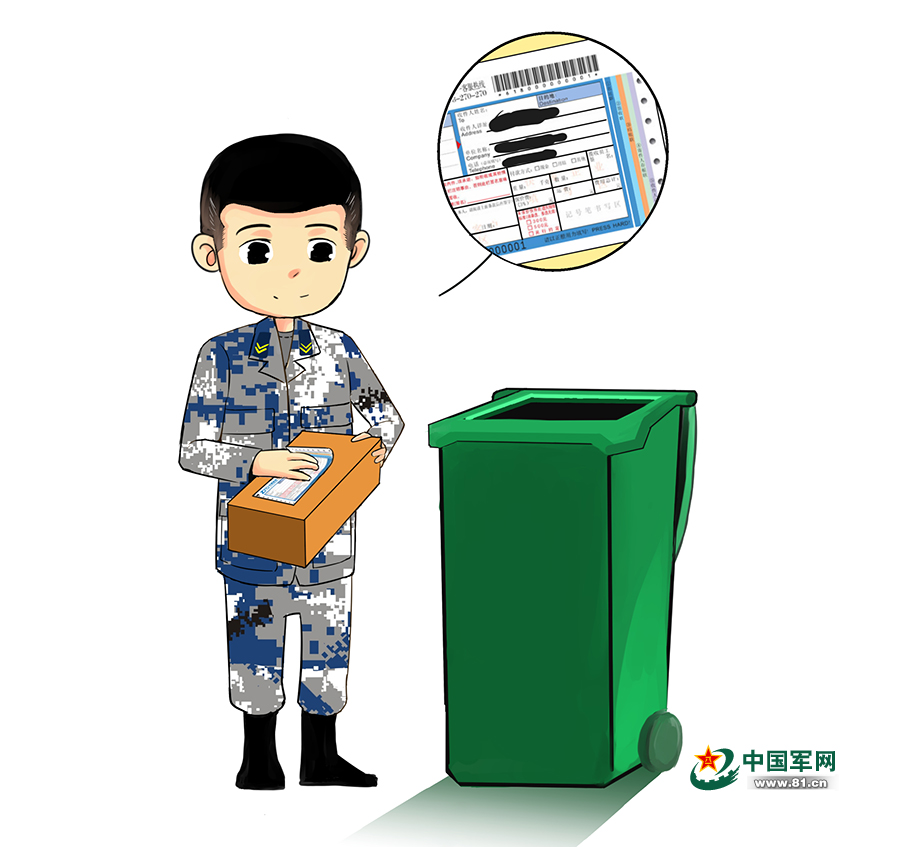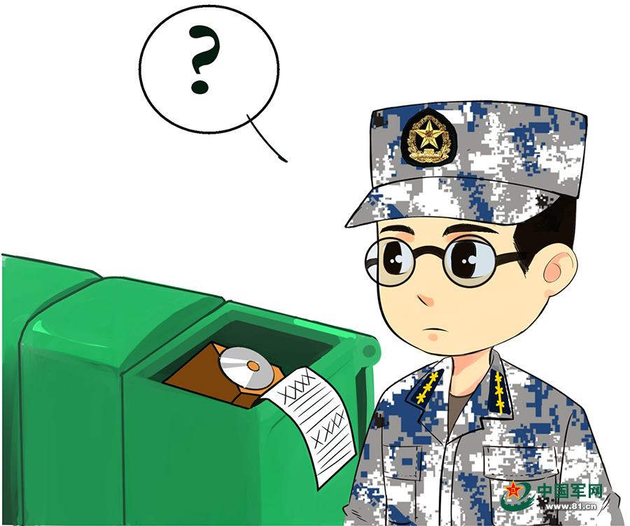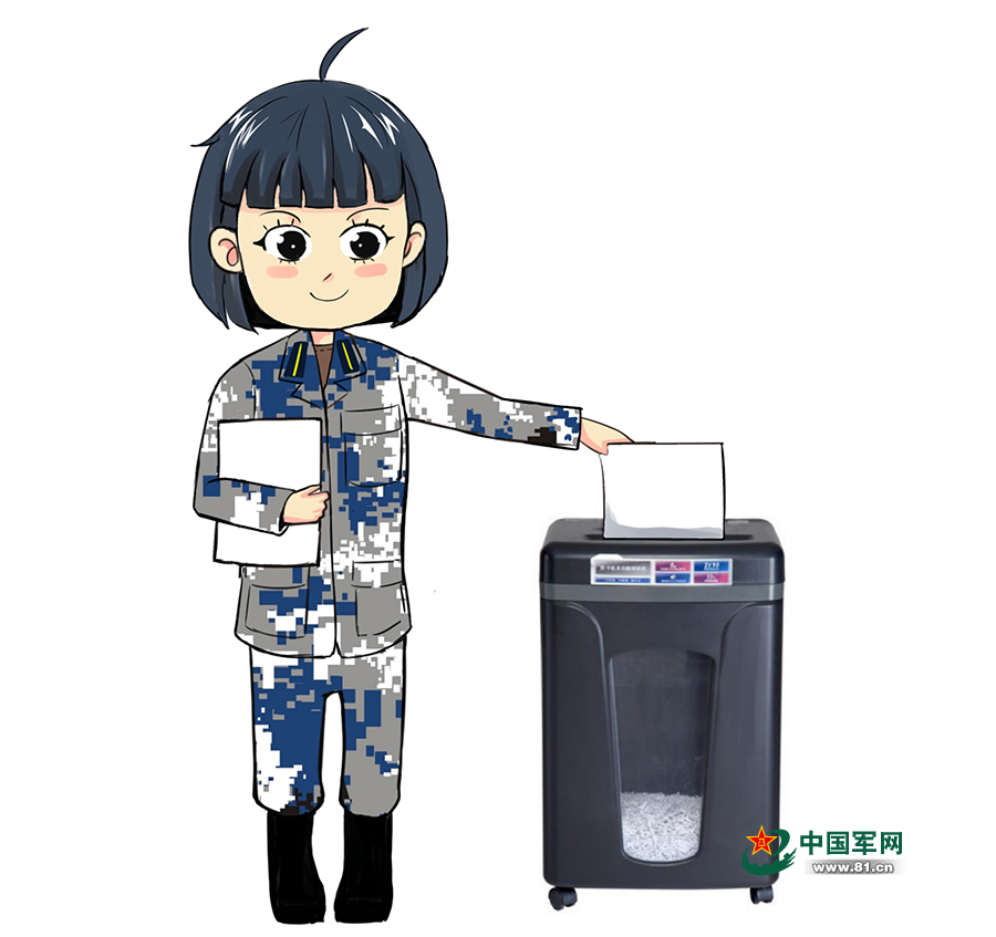 工作中臨時記事的紙片、接電話隨手記錄的通知、上報材料的底稿、數據登記統計的草表、專業學習的草稿紙計算紙等,務必交到連隊回收箱或用碎紙機徹底處理。
