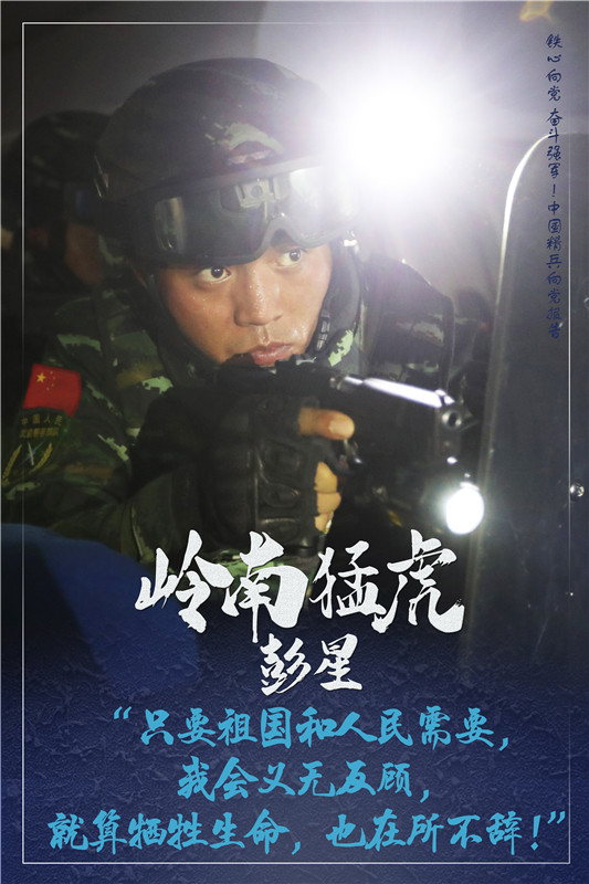 從軍身為刃,百煉鐵成鋼。風雨洗禮雄鷹的羽翼,戰斗鍛打蛟龍的鱗爪;縱橫交錯的傷疤,織就多棲尖兵永不褪色的迷彩;威震南國的雷霆,就是嶺南猛虎懲兇除惡的怒吼!沖鋒路上,只有凱旋才能讓你回頭!這就是武警廣東總隊機動支隊某中隊中隊長彭星——