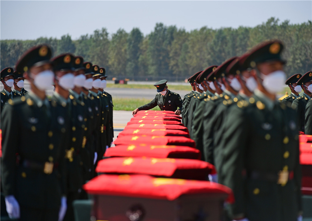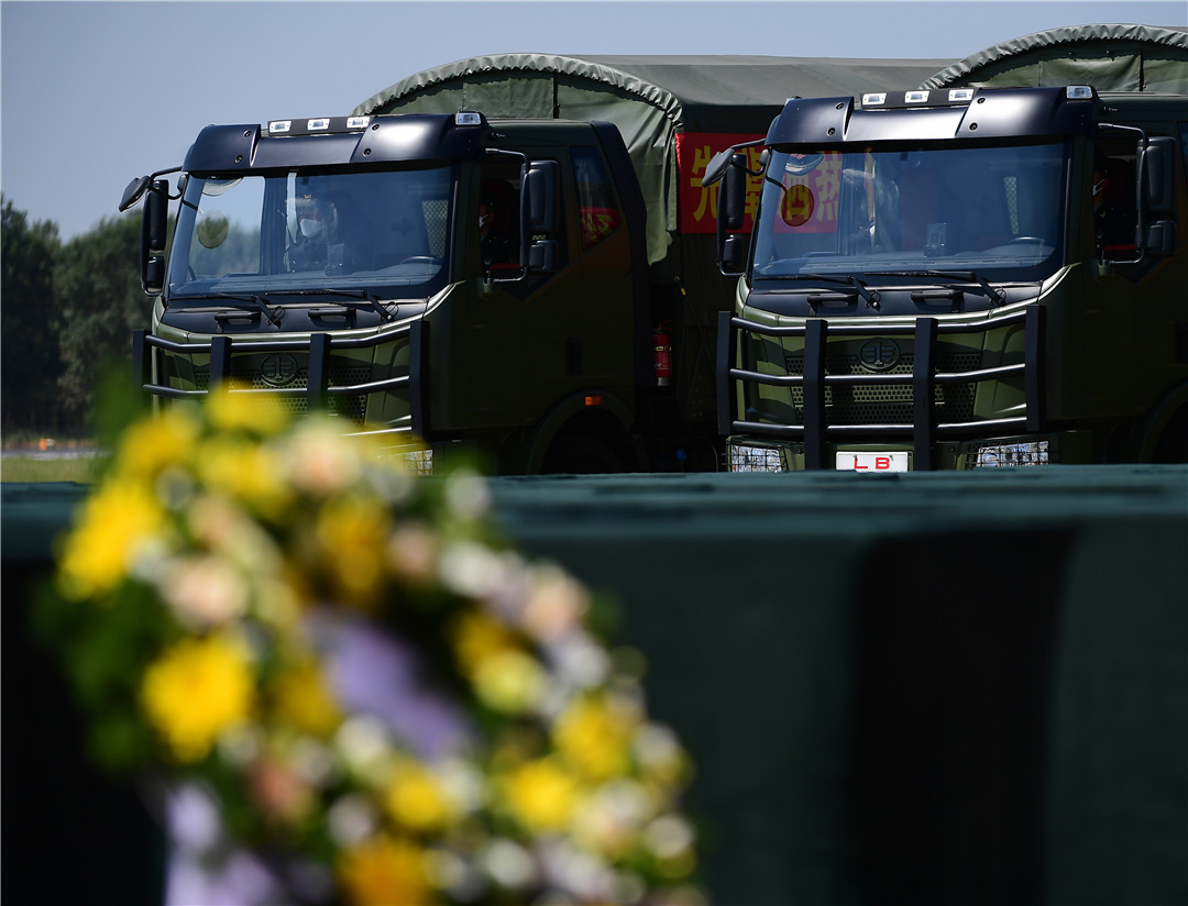 9月2日,志愿軍烈士的遺骸抵達沈陽抗美援朝烈士陵園。 新華社記者 姚劍鋒 攝