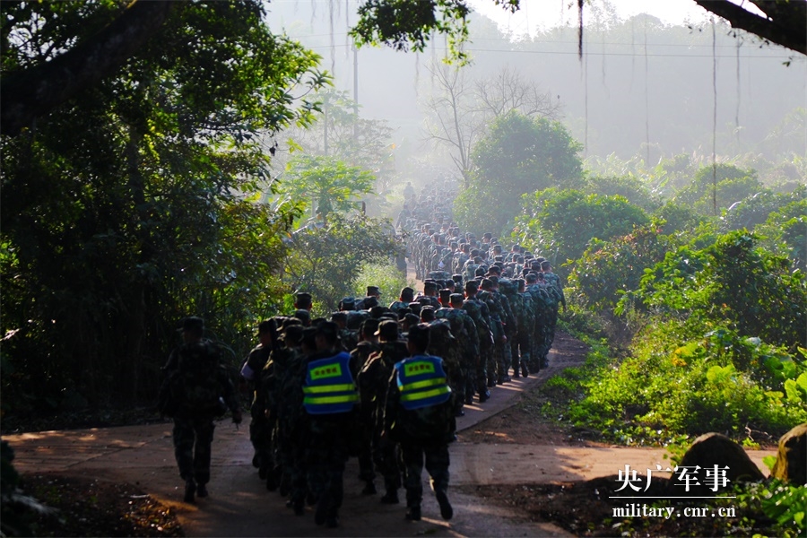 長約百米的行軍隊伍在密林中穿梭