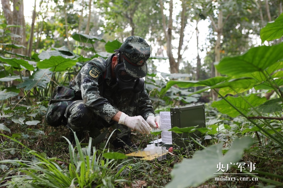 拉練官兵正在檢測甄別染毒物體
