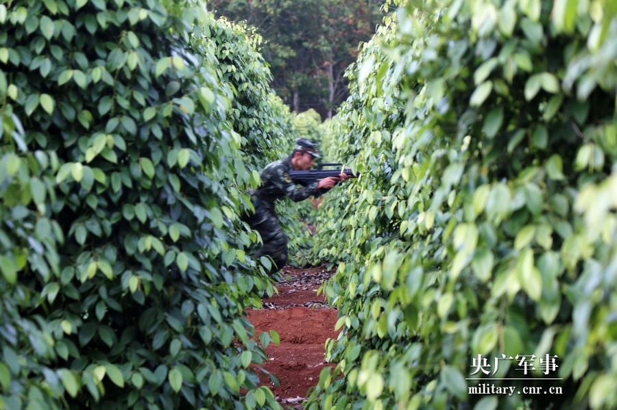 進行捕殲戰斗時,拉練官兵在胡椒田里快速追擊