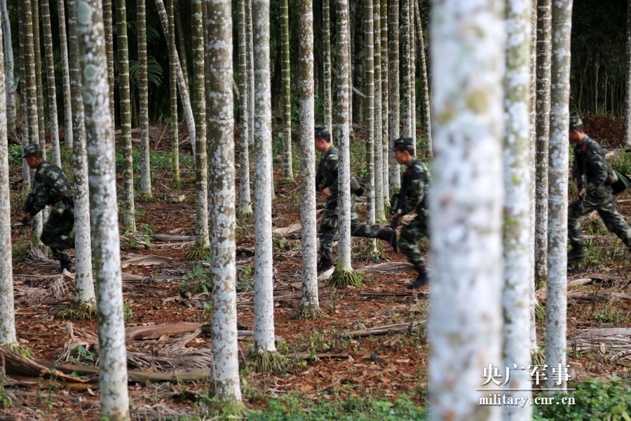 進行捕殲戰斗時,拉練官兵在檳榔林快速追敵