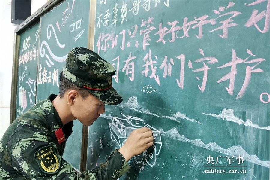 官兵在借宿的教室為小朋友留下祝福