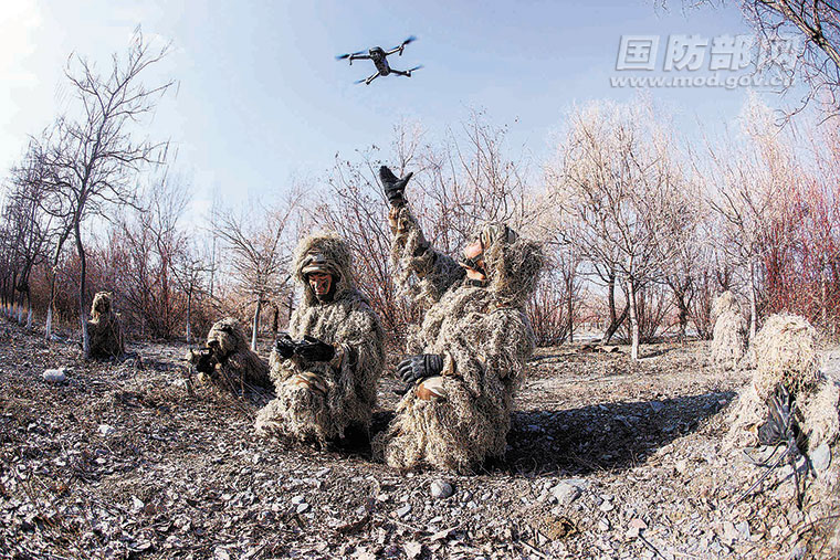 3月11日,新疆軍區某團組織官兵進行險難課目訓練,錘煉官兵在陌生條件下的作戰能力,突破制約部隊戰斗力提升的“瓶頸”。圖為官兵正在利用無人機開展偵察訓練。吳建平攝