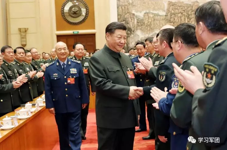 3月12日下午,中共中央總書記、國家主席、中央軍委主席習近平出席十三屆全國人大二次會議解放軍和武警部隊代表團全體會議并發(fā)表重要講話。這是會議開始前,習近平親切接見與會代表。解放軍報記者 馮凱旋 攝