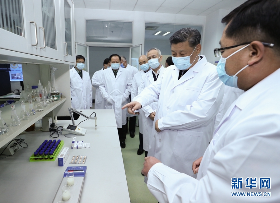 2日下午,習近平首先來到軍事醫學研究院,聽取研究院關于新冠肺炎疫情防控科研攻關的總體情況匯報,結合展板和實物了解疫苗和抗體研制、藥物篩選、病毒致病機理研究、快速檢測試劑研究和應用等進展情況。在儀器測試樓,習近平察看了重大疫情應急防控藥物研究室,向堅守崗位、奮力攻關的一線專家和科研人員表示親切慰問。他強調,提高治愈率、降低病亡率,最終戰勝疫情,關鍵要靠科技。習近平指出,新冠肺炎疫情發生以來,軍事醫學研究院堅決貫徹黨中央和中央軍委決策指示,聞令即動、爭分奪秒,集中力量展開應急科研攻關,取得了階段性成果,充分展現了人民軍隊忠于黨、忠于人民的政治本色和敢打硬仗、善打勝仗的優良作風。習近平希望他們再接再厲,充分發揮突擊隊和主力軍作用,盡快研制出安全有效的疫苗、藥物、檢測試劑,全力滿足抗擊疫情需要。要堅持在疫情可溯、可診、可防、可治、可控方面合力攻關,通過打這場硬仗,掌握更多具有自主知識產權的核心科技,拿出更多硬核產品,為維護人民生命安全和身體健康、維護國家戰略安全作出更大貢獻。