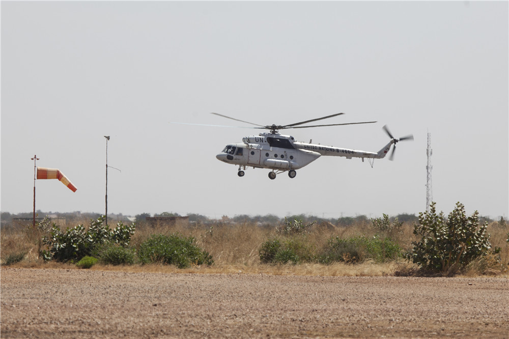 中國赴非盟-達爾富爾混合行動直升機分隊緊急轉運受傷的岡比亞維和警察。