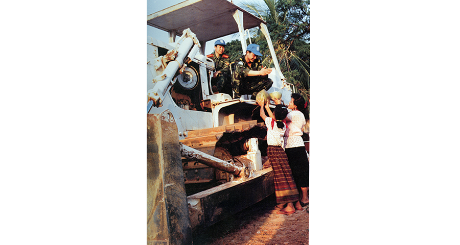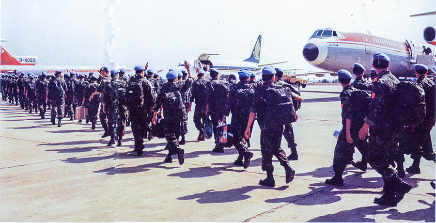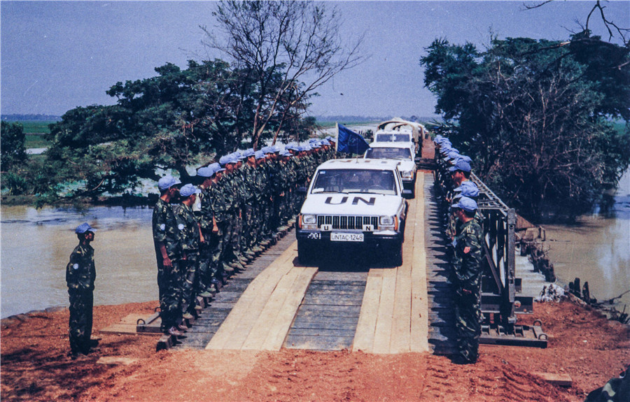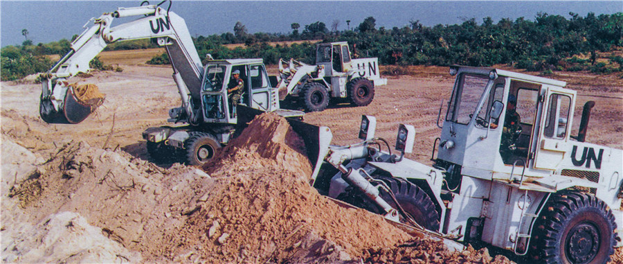 1992年4月至1993年9月,中國共向聯合國柬埔寨臨時權力機構派出2批800名維和官兵,他們在極其艱苦的條件下遂行工程支援任務。